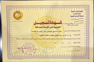 Certificate confirming comprehensive registration for Value Added Tax, which underlines complete adherence to all national fiscal regulations