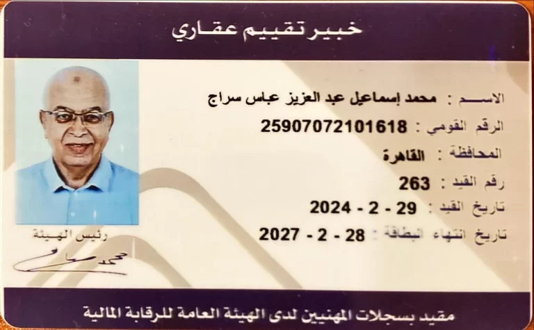 Certified and registered with Egypt's main financial regulator, authorizing official and legally binding Real Estate Valuation and Assessment services